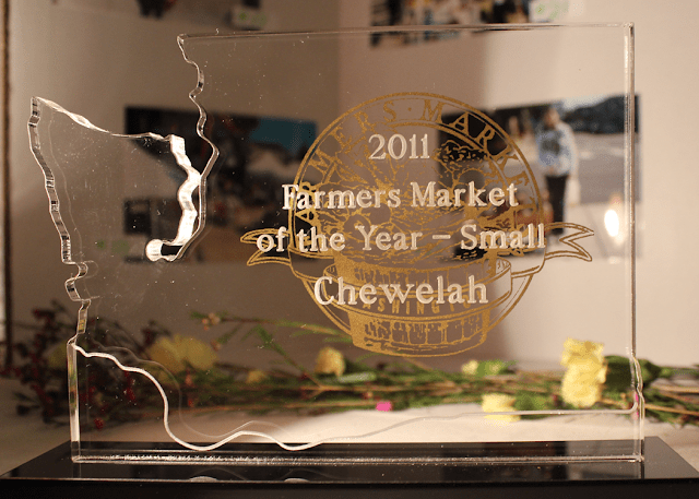 Wow! For the second year in a row the Washington State Farmers Market Association has selected the Chewelah Farmers Market as the Best Small Farmers Market! CFM President Nils Johnson accepted the award at the 2012 WSFMA Annual Conference held February 3rd-5th in Leavenworth, WA. Chewelah Farmers Market Board members Mary Ann Gehman and Shelly Stevens and CFM vendor Meadow Plunkett were also in attendance.